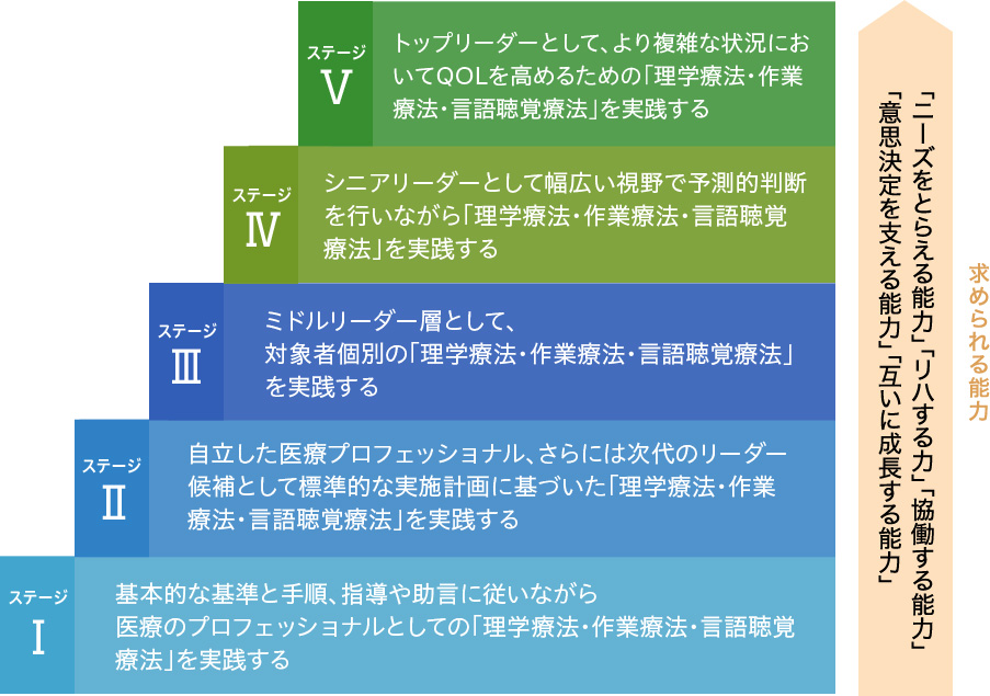 新セラピストのための独自の教育制度を利用し、個々の目標設定に沿って一段一段キャリアステップを登っていくことができます。
